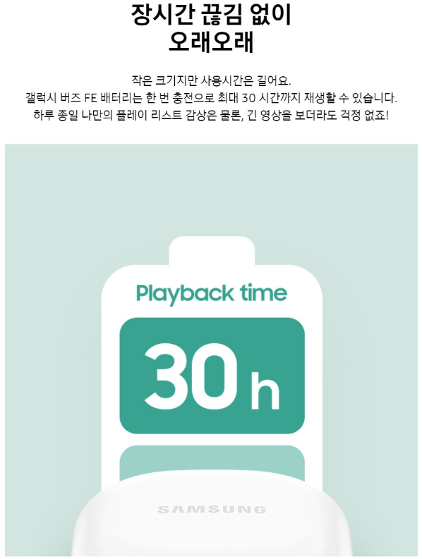 | 갤럭시 버즈 FE | 약 6만원 | 최대 12시간 | O | 편안함 |