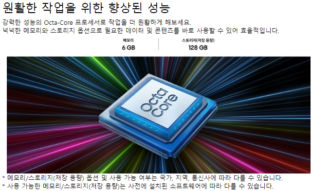 - 프로세서: 옥타코어 프로세서로 빠른 처리 속도를 자랑합니다.