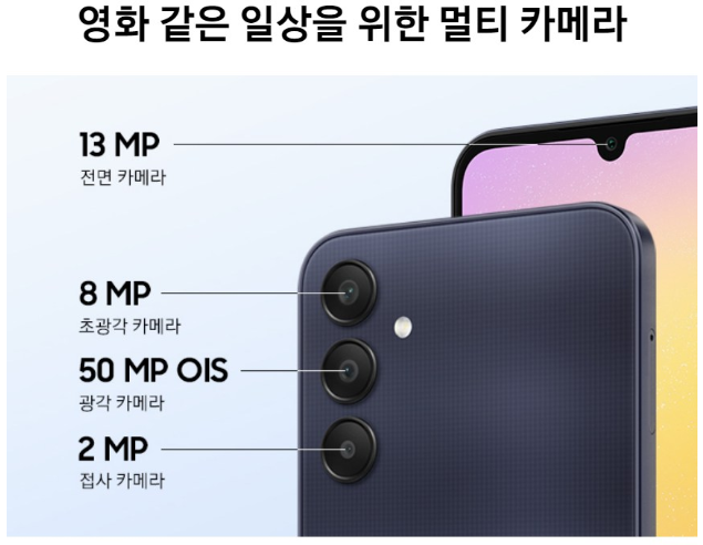 갤럭시 A25는 중저가형 스마트폰 중에서도 뛰어난 성능을 자랑합니다. 옥타코어 프로세서와 대용량 배터리는 일상적인 사용에 충분한 성능을 제공하며, 삼성 페이와 같은 편리한 기능들도 지원합니다. 특히, 갤럭시 A25의 6.5인치 FHD+ 디스플레이는 생생한 화질을 제공하여 동영상 감상이나 게임 플레이에 최적화되어 있습니다.