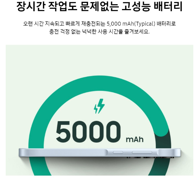 - 배터리: 5000mAh의 대용량 배터리로 하루 종일 사용 가능합니다.
