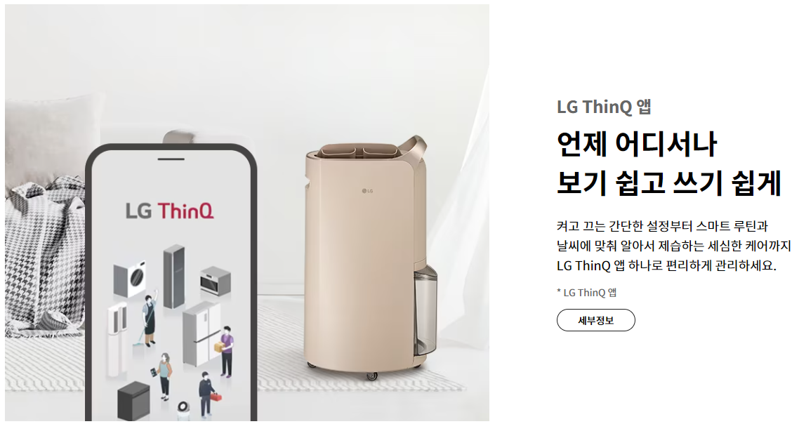 - 스마트폰 제어: LG ThinQ 앱 지원