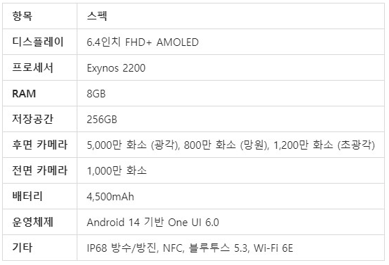 1. 갤럭시 S23 FE 주요 스펙